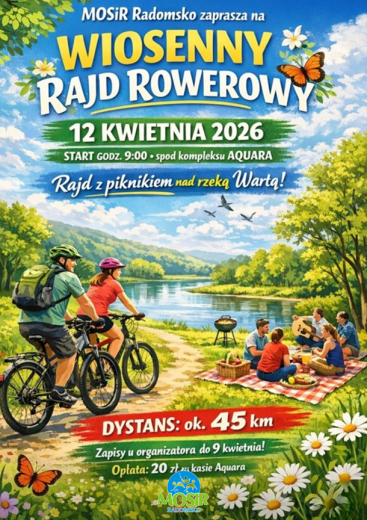 Miejski Ośrodek Sportu i Rekreacji w Radomsku już teraz zaprasza na wiosenny rajd rowerowy połączony z piknikiem nad rzeką Wartą 🚴♀️🌊🌳